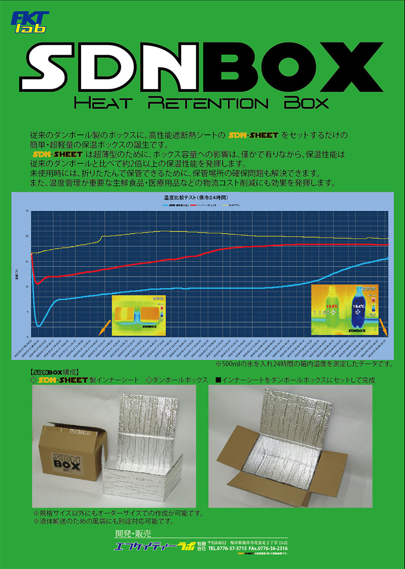 従来の輸送用のダンボール箱にSDN-SHEET製のインナーをセットした簡易型保温ボックスです。
